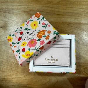 This Kate Spade light pink card wallet, presented in its original box, is a chic and practical accessory. Ideal for gifting.
