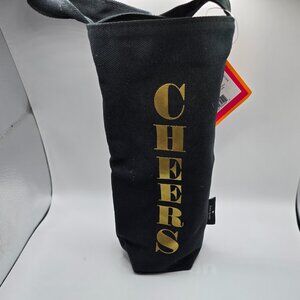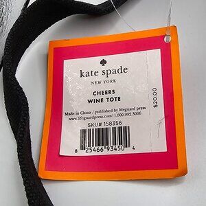 NWT New kate spade "Cheers" Canvas Wine Tote/Gift Bag - Black with Gold Letters