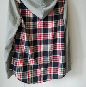 NWT New look juniors plaid snap shirt hooded size L (p2)