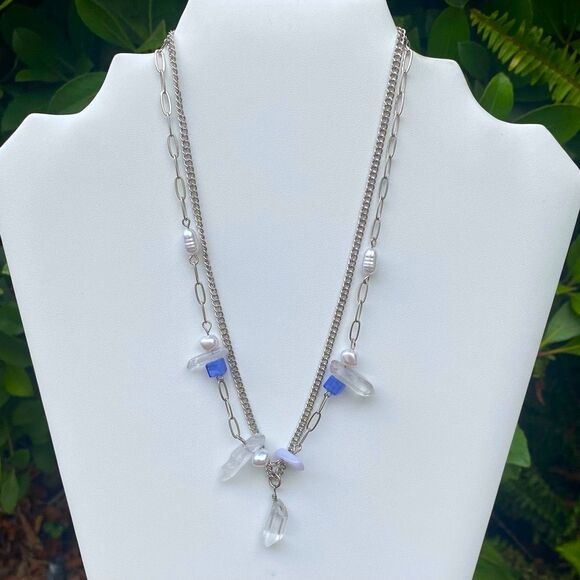 NWT New Two Urban Outfitters (OU) Silver & Blue Genuine Stone Necklaces