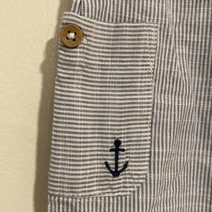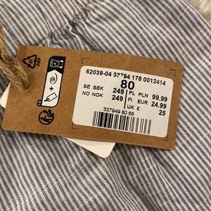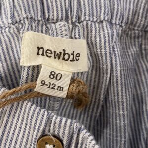 Blue and white stripe 100% organic cotton NWT Newbie 9-12 months pants with side pocket. Elastic waist
