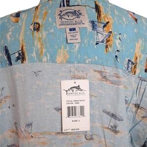 NWT Newport Blue, Blue Corona Luxury Hawaiin Button Down Shirt Men's Large