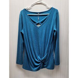 NWT- Niashot Criss-Cross V-Neck Long Sleeve Drape Top - Blue Small