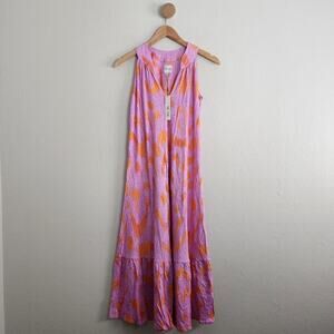 NWT Nic & Zoe Linen Blend Floral Tiered Sleeveless Midi Dress Pink Multi XL