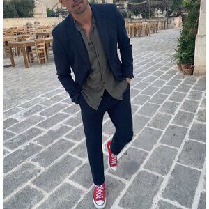 NWT Nicestuff Knit Interlock Blazer Jacket in Navy Sz. L