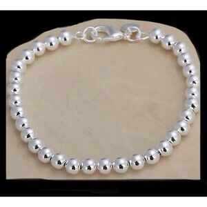 NWT Nichol Christian 925 Sterling Silver 6MM Beaded Bracelet 8in