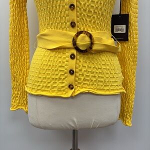 NWT Nicholas Adele Textured Knit V-Neck Cardigan Sweater Preppy Yellow XS