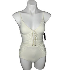 NWT Nicholas Fatima Shirred One-Piece Swimsuit White beige Tie Size XS ruched