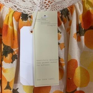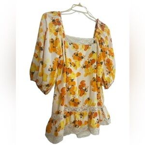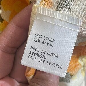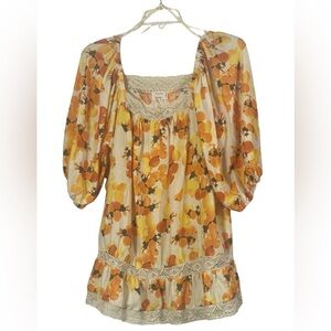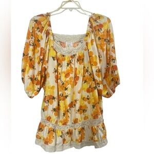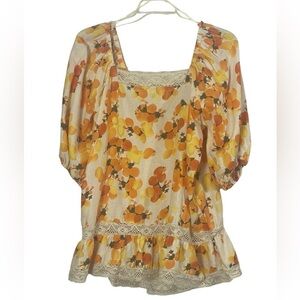 NWT Nicole Miller Artelier Puff sleeve, orange print, linen blend blouse.Size XL
