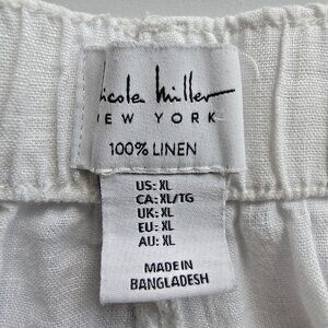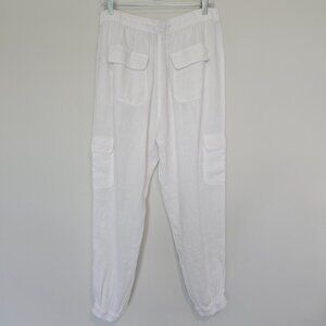 Nicole Miller White Linen Cargo Jogger Pants XL NWT - resortwear, minimalist, boho-chic. Great for brunch dates, vacation strolls, or casual weekend errands.