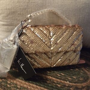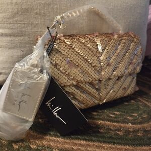 NWT Nicole Miller Gold Sequin Crossbody Bag