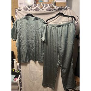 NWT Nicole Miller Hammered Satin Pajama Set Pants Size XL In Mineral Jade Woman