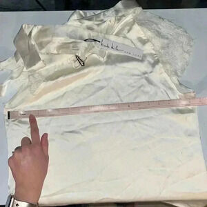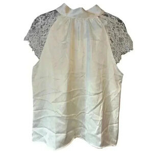NWT Nicole Miller Satin Shirt with Lace Detail Size M A56