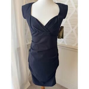 NWT Nicole Miller Women’s Size 6 Party Sweetheart Square Neck Ruched Cocktail Little Black Dress