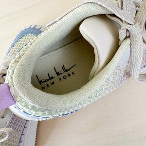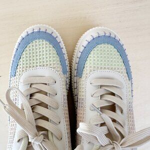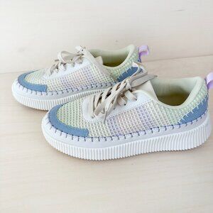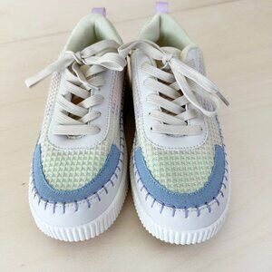 NWT Nicole Miller Sz 7.5 Woven Platform Sneakers White Blue Green Women's