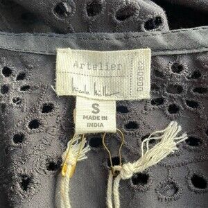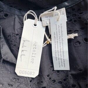 NWT Nicole Miller Top Black Cotton Eyelet Flutter Sleeve Blouse Size Small NEW