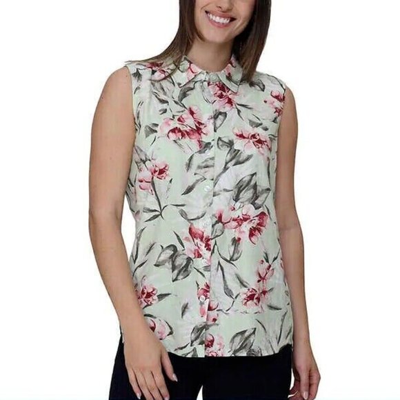 NWT Nicole Miller Women Linen Blend Sleeveless Button Down Green Sz 2XL $60 Z979