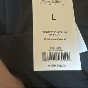 NWT Nicole Miller black one piece swimsuit Large Deep V Adjustable Steaps