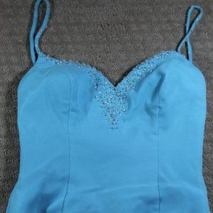Simple, flattering and captivating! This light blue with simple beading is fitted with a sweat heart neckline and beaded spaghetti straps. Vintage Y2K with tags still attached. NEW condition.