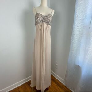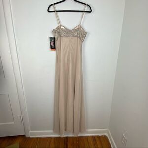 Unique Vintage Dead Stock Y2K 90’s Night Way Cream/ Oyster Formal Evening Long Gown Maxi Dress