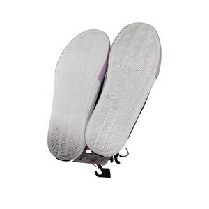Designed in vibrant, colorful tones, these shoes have a lavender rubber sole accent at the front, giving them a playful twist while keeping that alternative edge.