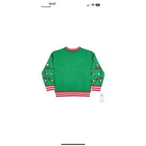 This NWT Nightmare Before Christmas Ugly Christmas Sweater is perfect for fans of Jack Skellington and Sally. Made of 50% viscose knit fabric, this multicolor sweater features a crew neck and long sleeves for comfort. The pullover style with a ribbed cuff, hem, and neckline adds a cozy touch to the Christmas-themed sweater. This unisex kids' sweater is lightweight and suitable for sizes 14/16, making it a fun and festive addition to any young fan's wardrobe.