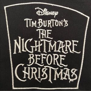 Woven fabric and silver embroidered Tim Burton's The Nightmare Before Christmas logo on one side