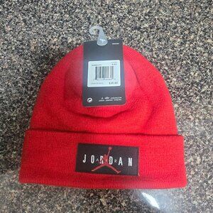 NWT Nike AIR JORDAN Boys 8-20 Red Knit Cuffed Beanie Jumpman Logo Winter Hat