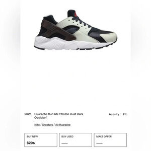 NWT Nike Air Huarache GS 'Photon Dust Dark Obsidian