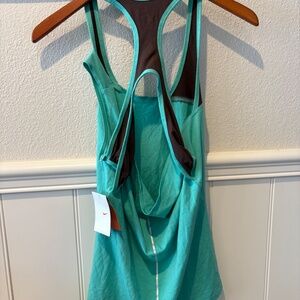 NWT never worn Nike women’s athletic workout top in aqua & brown.