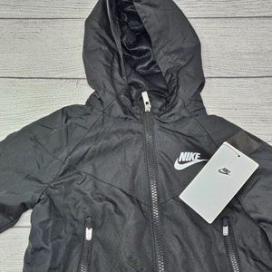 NWT Nike Boys Hooded Black Windbreaker Jacker Size 2T