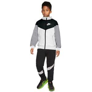 This stylish Nike Windrunner Jacket in white, black, and grey is perfect for boys. It's new with tags and ready for action!