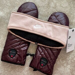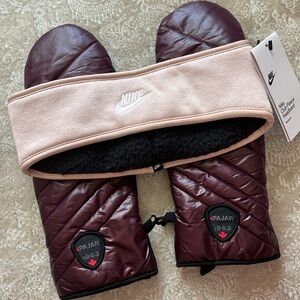 NWT Nike Club Fleece Pink Headband & NWOT Pajar 1963 Canada Burgundy Mittens Set. Gloves are women's size XS/S. Great for runners!