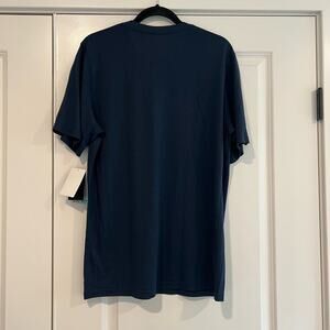 All orders ship within 1-3 business days. This t shirt is made by Nike. Color is dark navy. Size is large. Excellent condition, new with tags. Fabric is 100% polyester. Make me an offer! Although item is NWT we recommend washing all clothes before wear.