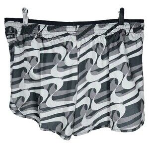 Women's Nike Dri-FIT Icon Clash Tempo Luxe running shorts, size Extra Large. New with tags! This colorway is Black/Dark Driftwood/White and features an allover abstract print that incorporates the swoosh logo. Lightweight and stretchy, with smooth elastic inner waistband for comfortable fit against your skin. Brief inside with hidden key pocket at waist and coordinating tan drawstring to adjust the fit. Small zip pocket on exterior at hip. Rubberized Nike logo patch on front.