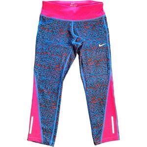 NWT Nike Dri-Fit Racer Leopard Print Capri Leggings, Size XS, Blue/Pink/Black. This pair of Leggings feature:
