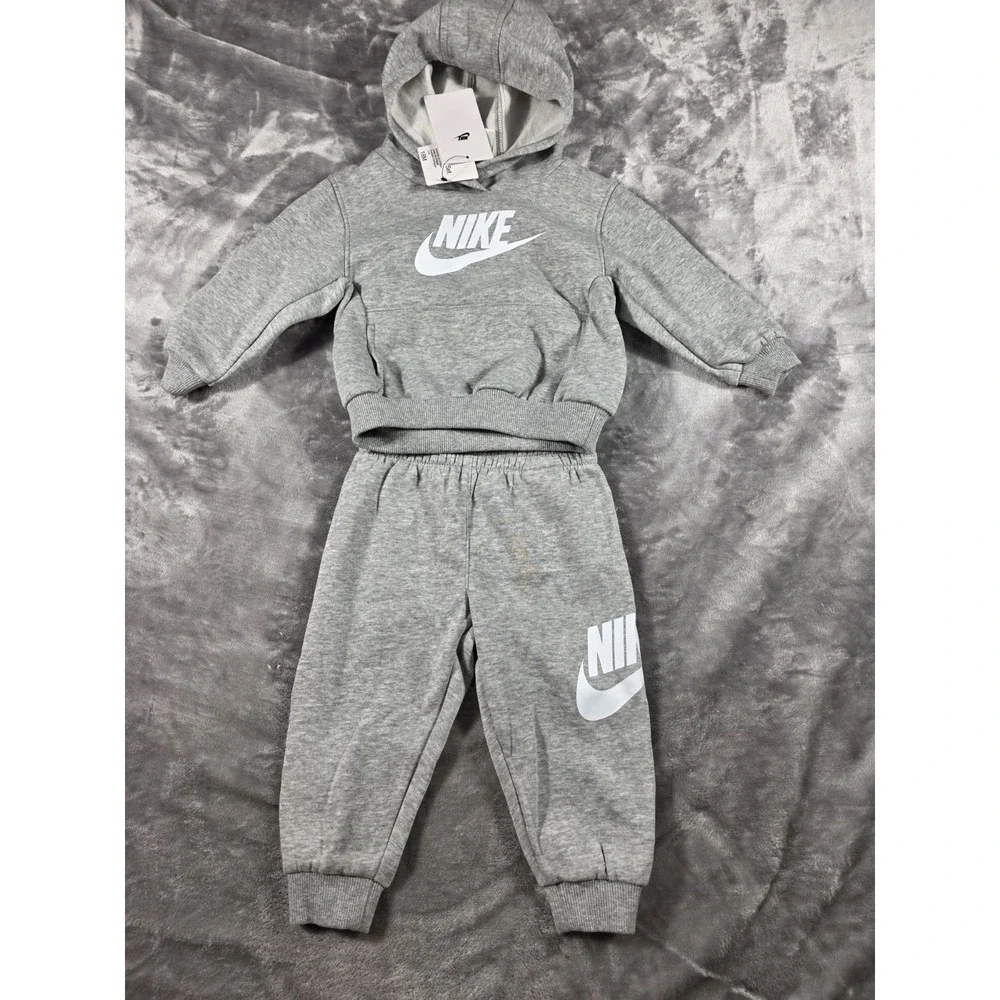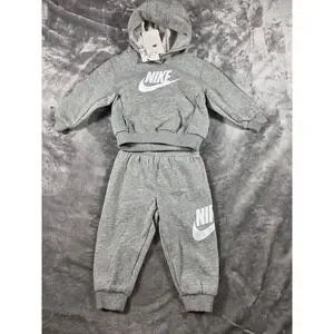 NWT Nike Fleece Sportswear Hoodie and Jogger Tracksuit Set Heather Gray 18M