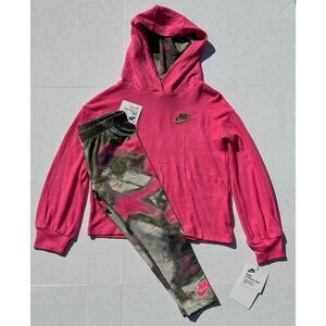 NWT Nike Girls Pullover Hoodie and Leggings Set Pink Olive - Size 5