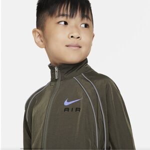 CLASSIC AIR MEETS THROWBACK STYLE. Your little one will look like an original in the Nike Air Warm-Up Set. This classic combo has a comfy full-zip jacket and matching pants for an easy, coordinated look. Add a water resistant finish, and little ones can keep the game going, even in the rain. Benefits: Full-zip closure makes layering easy. Elasticized waistband provides a comfy fit. Water resistant finish helps keep kiddos dry in lighter rains.