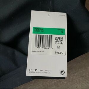 NWT Nike Maternity cross over nursing bra in black. Pull down style nursing bra. Crisscross straps are fixed, but the band is adjustable. Does not have pockets for cups, but is thickly lined.