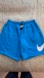 Dynamic blue shorts with iconic white Nike swoosh. Ideal for sports and leisure.