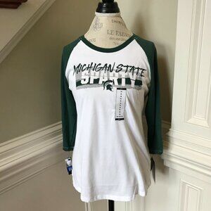NWT Nike Michigan State Sparty Raglan T Shirt Womens Medium Green White Baseball
