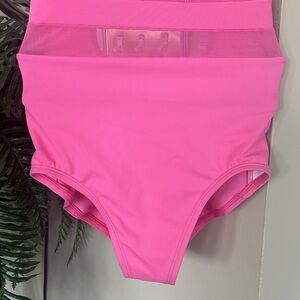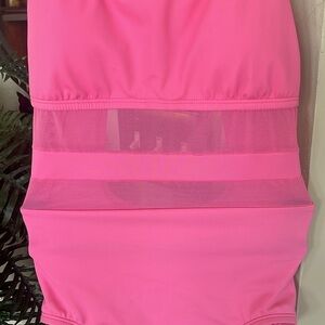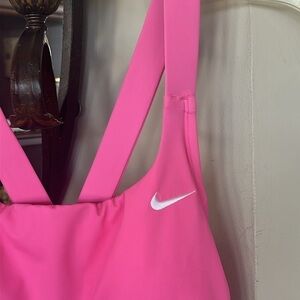Brand New Nike Pink Mesh Solid Edge V-Back Sporty One-Piece Swimsuit White Swoosh. Women's size Small.