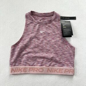 NWT Nike Pro Women Pink Space Dye Cropped Tank Dri-Fit Racerback Top