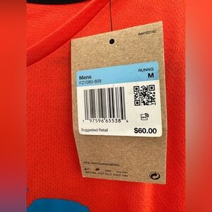 This lightweight running top is made with breathable, sweat-wicking mesh in a relaxed fit. Graphics celebrate those feel-good chemicals released in the mind by running. Benefits:Nike Dri-FIT technology moves sweat away from your skin for quicker evaporation, helping you stay dry and comfortable. Smooth mesh is lightweight and ultra-breathable to help you keep cool. Back hem is designed longer for extra coverage. Product Details:76% polyester/12% cotton/12% rayon. Machine wash. Imported. Not intended for use as Personal Protective Equipment (PPE). Style: FZ1080; Color: Cosmic Clay/Summit White; Size: M Tall; Gender: Male; Age Group: Adult | Nike Rise 365 Run Energy Men's Dri-FIT Short-Sleeve Running Top in Orange, Size: M Tall | FZ1080-809