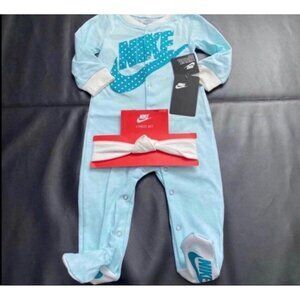 Brand new with tags Nike snap up sleeper with matching knotted headband. Super cute! Baby girls size 9 months.