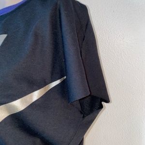 NWT Nike Sportswear Relaxed Fit Logo Swoosh Black Metallic Pewter Gray T-Shirt M