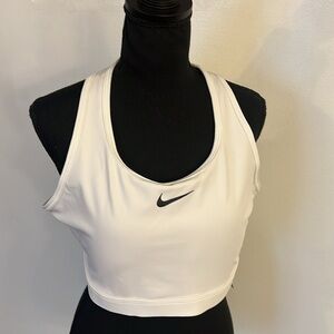 NWT Nike Swoosh Plus Size White Sports Bra Dri-fit Classic Style, Sz XXL. From Nike: You're on the move. Your padding shouldn't be. This Swoosh bra's sewn-in pads stay in place so you can work hard without worrying about them shifting or folding. Great for training workouts and dance classes, medium support gives you a snug hold that helps keep everything in place. Plus, sweat-wicking, adaptive material quickly recovers its shape so you can stay comfortable throughout your workout. This is an excellent addition to any closet.