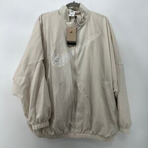 NWT Nike Swoosh Women's Cream Windbreaker Oversized Baggy Sport Jacket XL 1X 2XL