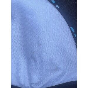 The product is a women's Nike T-Back Bikini Top in size 16. It is a solid blue color with a sports theme, designed specifically for the beach or pool. The bikini top is from the Nike brand, known for its quality and style in athletic apparel. The regular size top is made in Indonesia and is perfect for women looking for a comfortable and stylish swimsuit option.